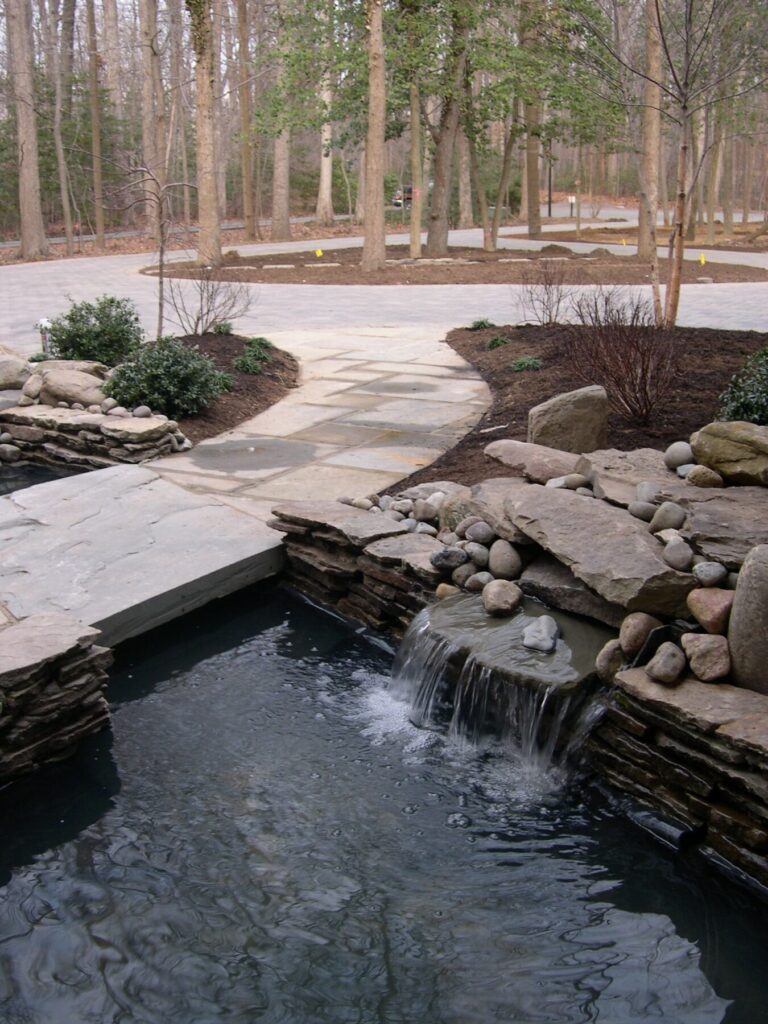 Ever consider JUST having the falls part and not worrying about the pond part? With a pondless waterfall design, you can get the sound with half of the maintenance. You also don’t have to worry about animals or people falling in.