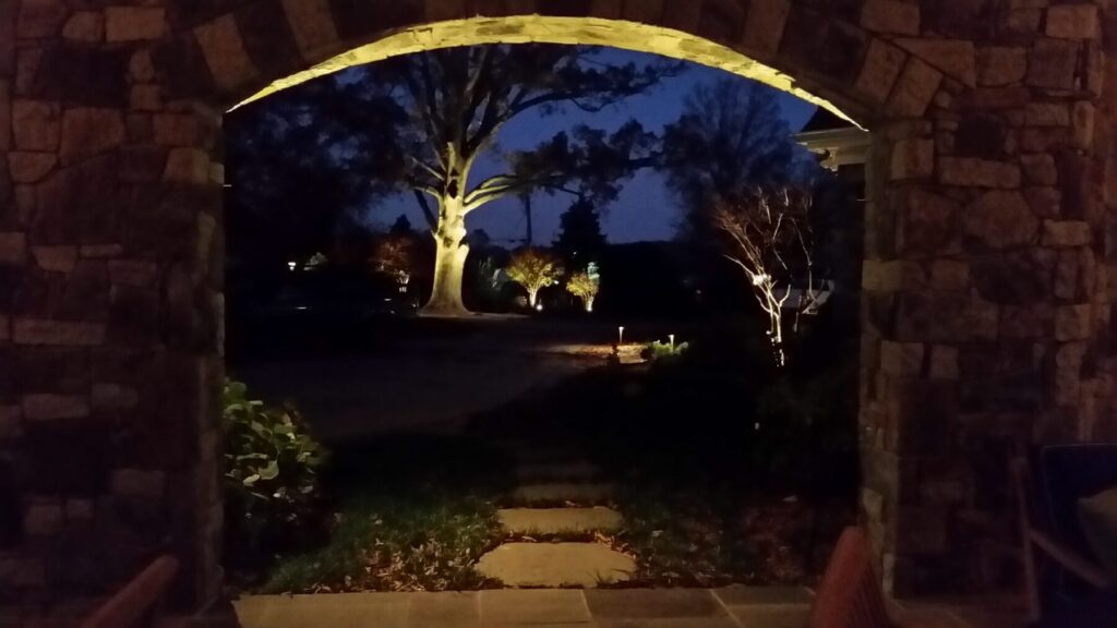 One of the main benefits of landscape lighting is that it makes your property a lot more appealing at night. Instead of seeing a dark mass when you approach your home at night, you can see the whole house elegantly lit. This is great for you or future buyers. Imagine driving up after a hard day of work and seeing your home gently lit up. It really does give you a sense of pride. It is also important not to overdo accent lighting. It is supposed to be just that, an ‘accent’. You don’t want a plane landing in your front yard! You just want to impress the neighbors and increase your property value! A good Landscape Designer will be able to guide you in the right direction.