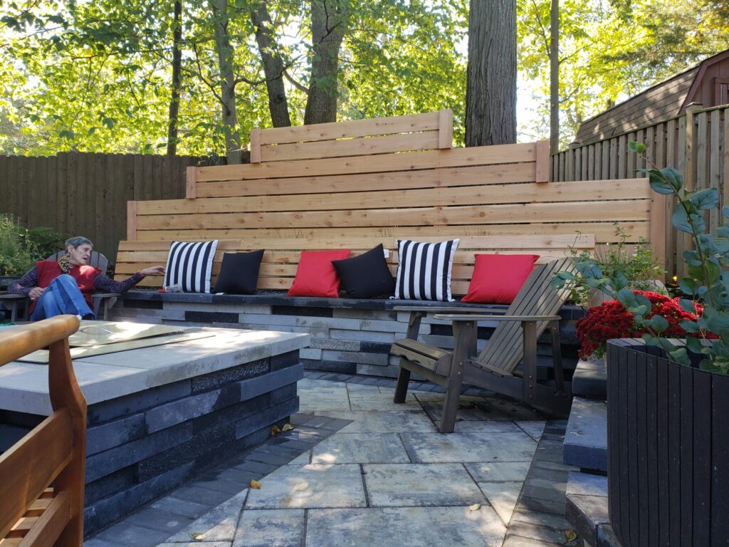 Of course the best way to enjoy your patio in cold weather is to have a heat source to keep you warm. And at the same time, people love to sit around a fire, so why not install a fire pit or a fireplace? A fire feature will bring the warmth, be a focal feature, AND a conversation piece/starter.