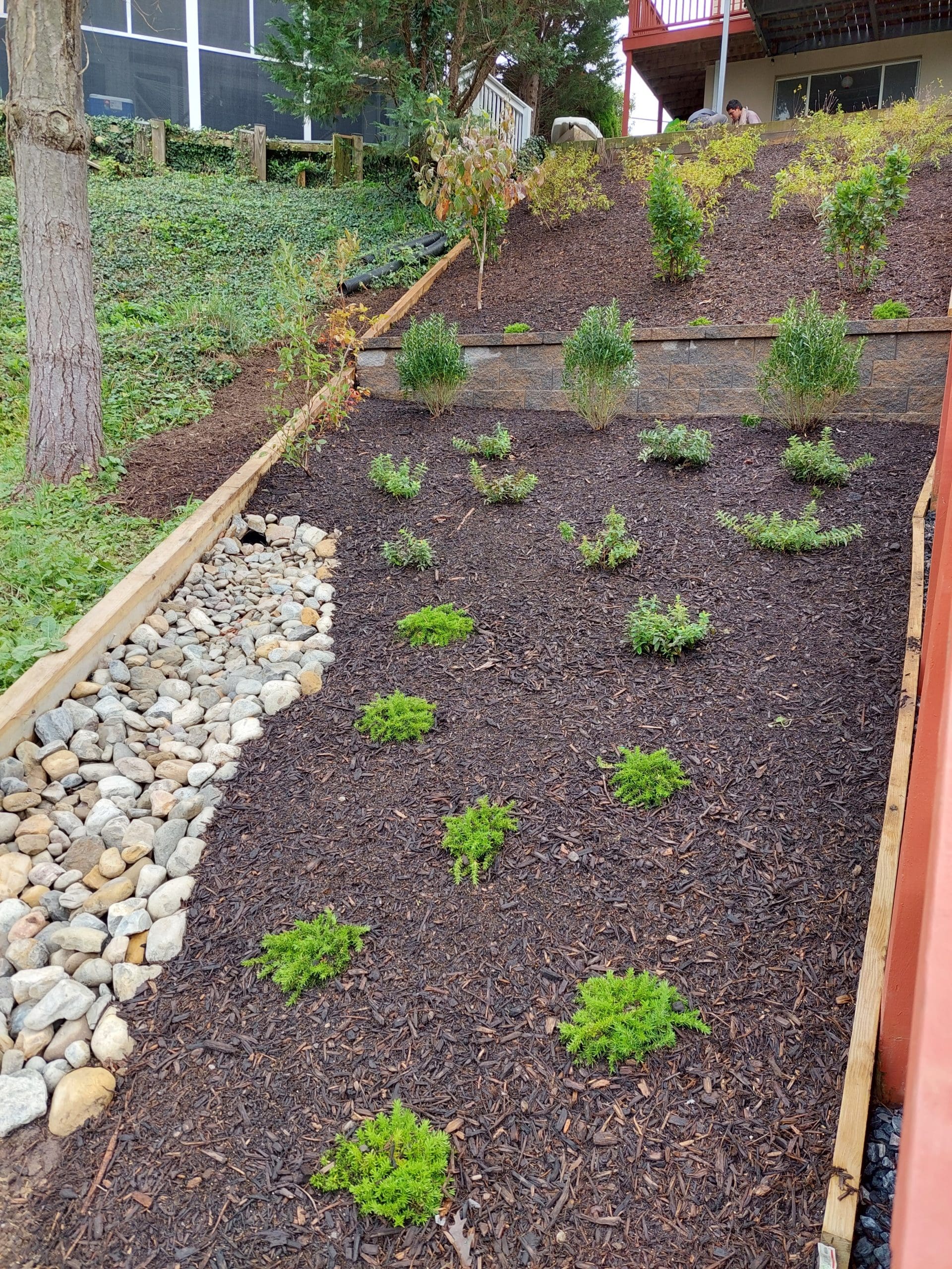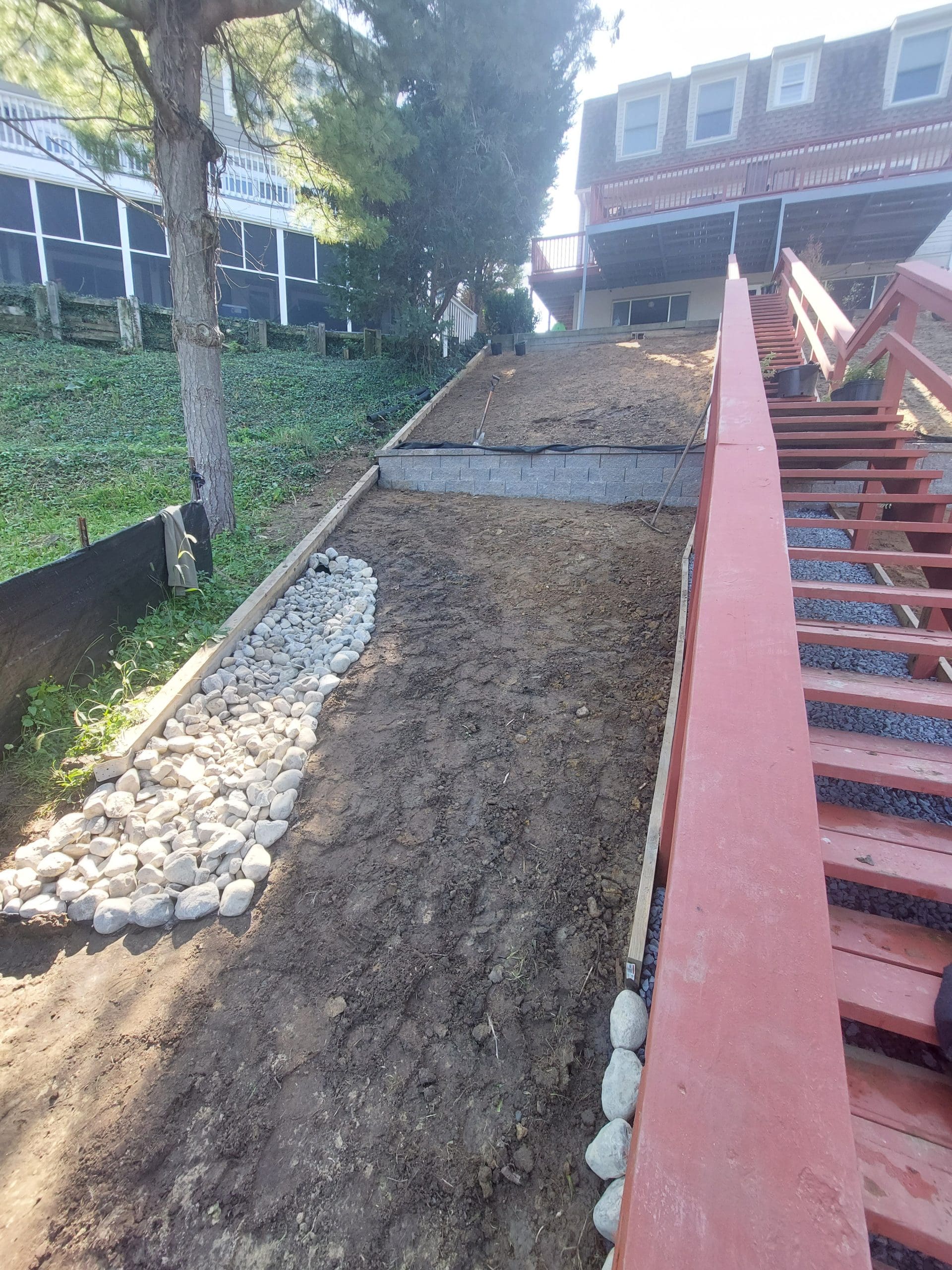 We helped educate them on Anne Arundel County code and worked to sort everything out. We got the correct permits, installed the plantings, fixed the drainage problems, and even replaced a failing retaining wall.