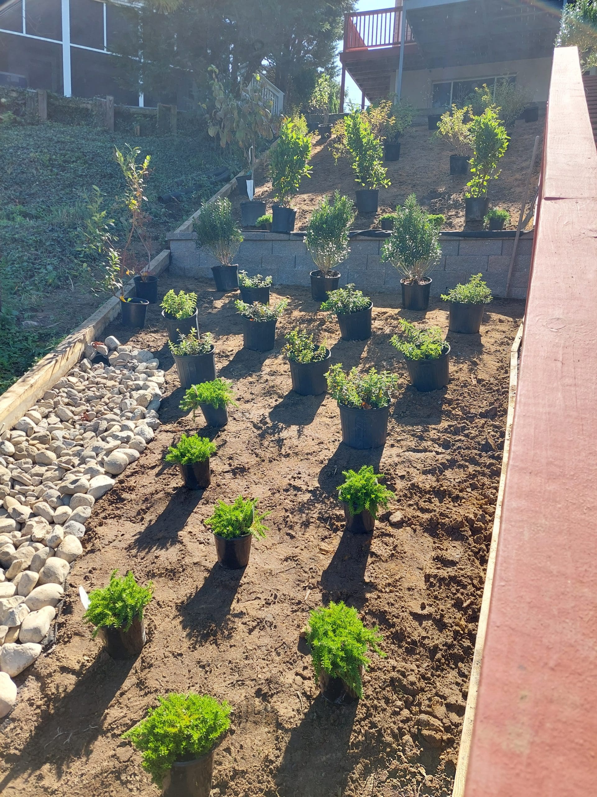 Our clients were ordered to remove the Synthetic lawn already installed, fix the drainage pipes, and plant at a 4:1 ratio! That means if you clear 1000 square feet you have to plant 4000 square feet. That is a lot!