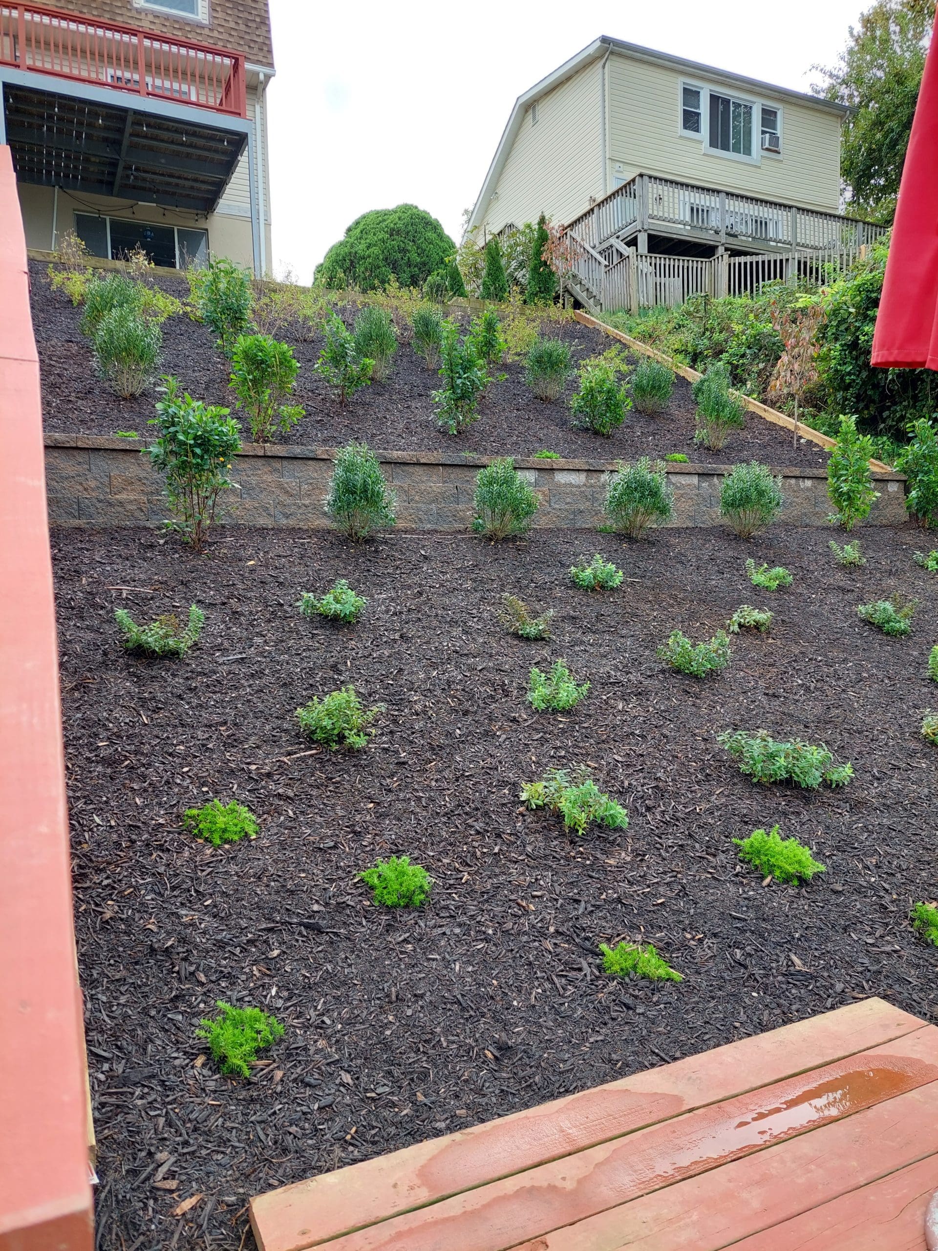 The clients did a great job watering all the new plants and getting them to stabilize the slope. It is now a beautiful waterfront slope that they can enjoy, as well as, the wildlife in the area.