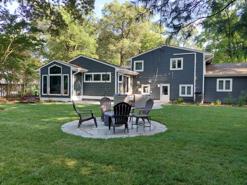 The completed project successfully balances hardscape and softscape elements while maintaining the property’s natural woodland character. The homeowners now enjoy multiple outdoor living spaces perfect for relaxation and entertaining throughout the seasons.
